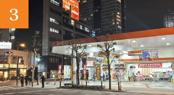 この十字路にはエネオスのガソリンスタンドが目印です。