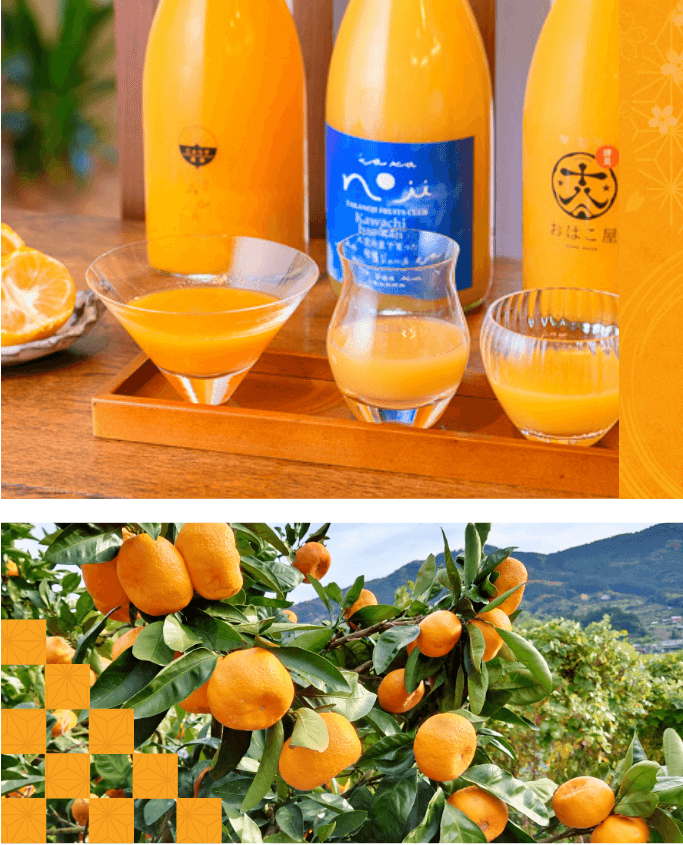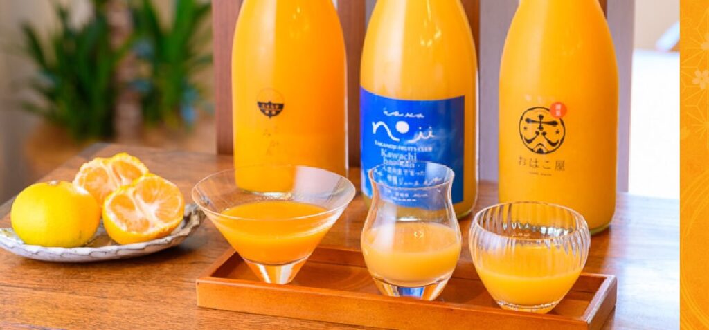 愛媛減退品種、甘平をはじめ、せとか、紅まどんな、河内晩柑など、季節によって変わる種類豊富なジュースを